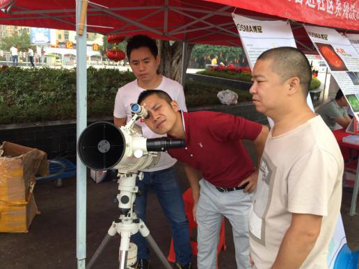 廣場一隅,還聚集著一群天文迷,天文愛好市民透過深圳市鵬程光學(xué)望遠鏡有限公司望遠鏡就能探索星際間奧秘,揭開太空神秘面紗。據(jù)了解,星特朗望遠鏡為著名的物理學(xué)家、宇宙學(xué)家霍金觀察星系與天體,收集天文研究資料做出卓越貢獻。通過對天文望遠鏡項目體驗,能直觀傳播天文物理知識,鼓勵市民勇于探索、發(fā)現(xiàn)、創(chuàng)造。