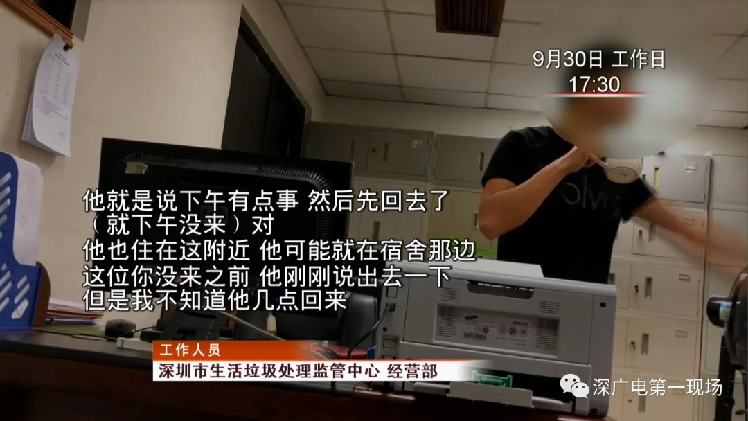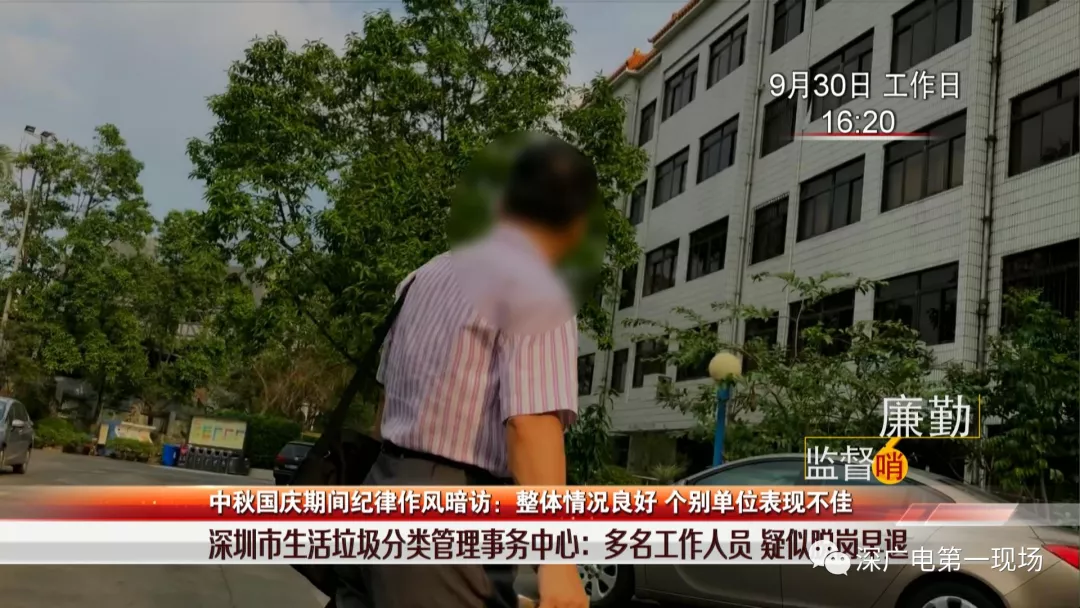 就在下午四點到四點半之間,暗訪組成員還發(fā)現(xiàn),有大量深圳市生活垃圾處理監(jiān)管中心和深圳市生活垃圾分類管理事務中心的工作人員離開單位,疑似脫崗早退。