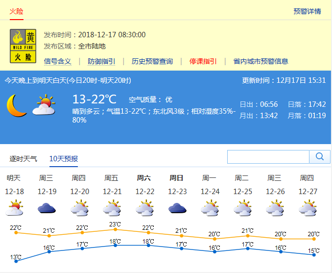 市氣象局發(fā)布未來十天天氣預(yù)報(數(shù)據(jù)更新于12月17日15時31分)