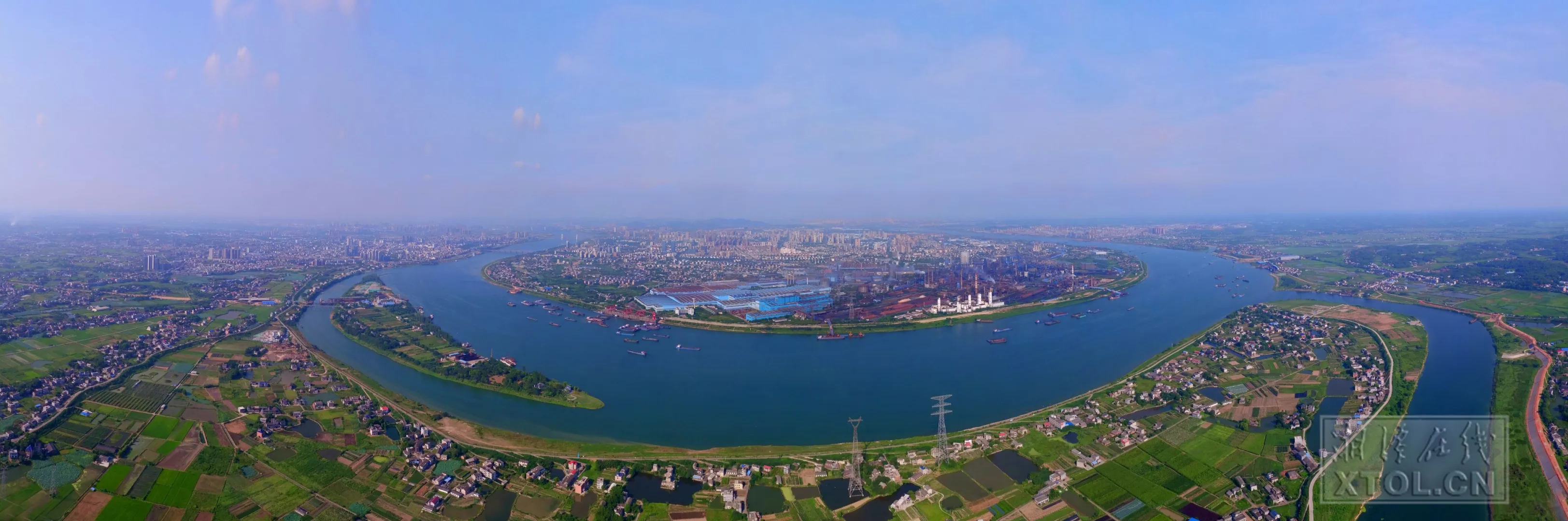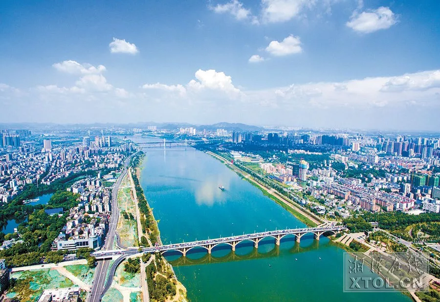 藍天白天映襯下的湘江湘潭段,江水清澈。(記者 方陽 攝)
