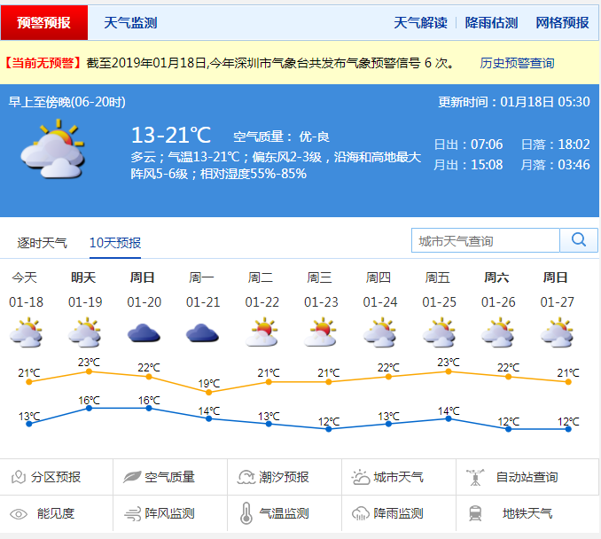 1月18日,深圳早上最低氣溫普遍在12-13℃,穿少了的同學是否在上班時瑟瑟發(fā)抖了?這兩天是洗洗曬曬的好日子,然后就可以準備過年了,預計今年深圳市不入冬了,畢竟沒有冬天的深圳,是常規(guī)操作。