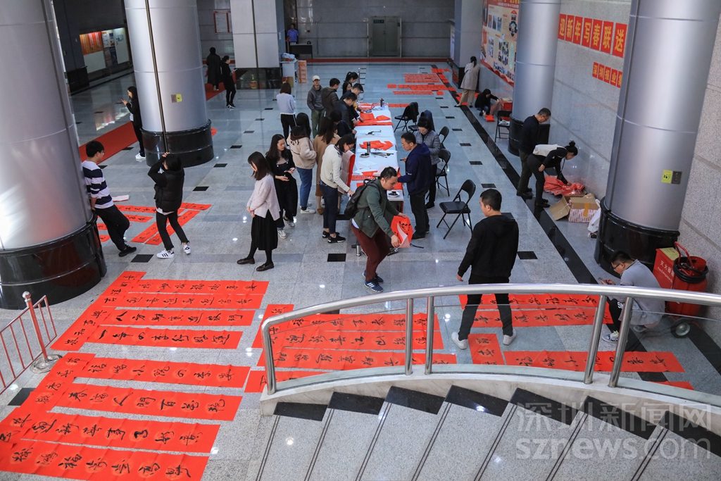 深圳新聞網(wǎng)2019年1月24日訊(記者 張玲實習(xí)生 關(guān)天宇)寫春聯(lián)送祝福是深圳報業(yè)集團每年的例牌環(huán)節(jié),今年也不例外。1月24日下午,深圳報業(yè)集團工會在商報大廈和深圳特區(qū)報業(yè)大廈同時開展主題為“迎新年寫春聯(lián)送春聯(lián)”的活動,平時用鋼筆電腦寫新聞的記者編輯,今天用傳統(tǒng)的筆墨紙硯寫下對新一年的祝福和期許。