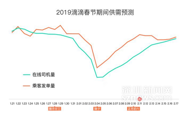 據(jù)滴滴大數(shù)據(jù)預(yù)測顯示,今年春節(jié)期間(1月28日-2月10日)全國平均打車成功率下降20%,全國范圍內(nèi)將出現(xiàn)空車較少,等車時間較長的現(xiàn)象,其中除夕至正月初二是打車最難的三天,主要原因是春節(jié)出行需求增多,但大部分司機也選擇休假與家人團聚,進(jìn)而造成較大的供需失衡。