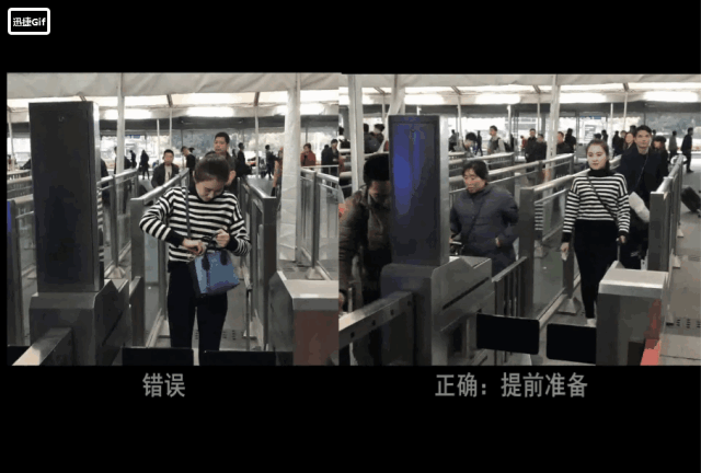 通過自助驗證閘機或人工檢票進站時,應(yīng)提前準(zhǔn)備好證件、車票,避免耽誤個人進站時間、其他旅客時間。