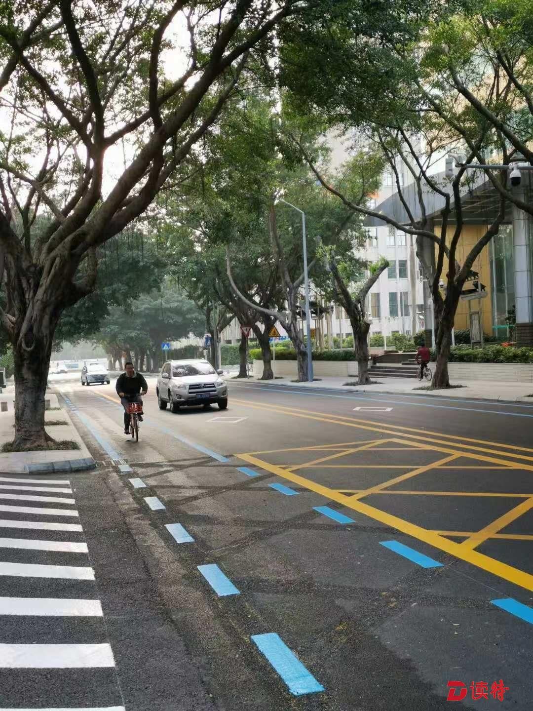 深圳特區(qū)報2019年1月29訊 記者注意到,近日福田蓮花支路上多了一條藍(lán)色的非機(jī)動車道。