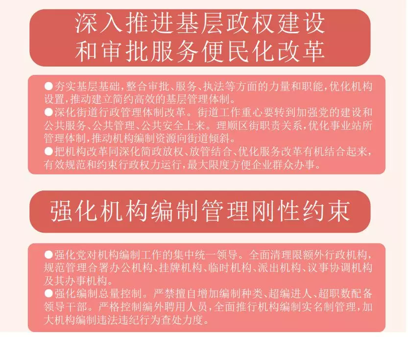 二是踐行以人民為中心的理念。在政務服務、退役軍人事務、衛(wèi)生健康等領域組建相應的新機構,更好推動公共服務、社會管理各項事業(yè)發(fā)展,加大力度保障和改善民生,努力解決居民群眾最關心最直接最現(xiàn)實的利益問題,更好滿足人民日益增長的美好生活需要。
