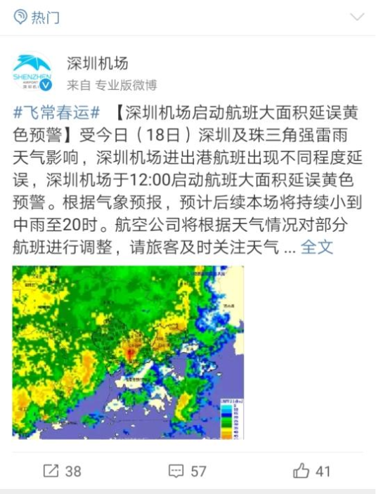老天爺這周下起了2019年的首場暴雨!深圳機(jī)場今年首次航班大面積延誤