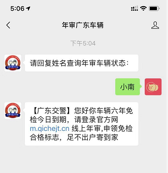 隨便輸入字符后,公眾號提醒,“車輛六年免檢今日到期”要求登錄官網線上年審。