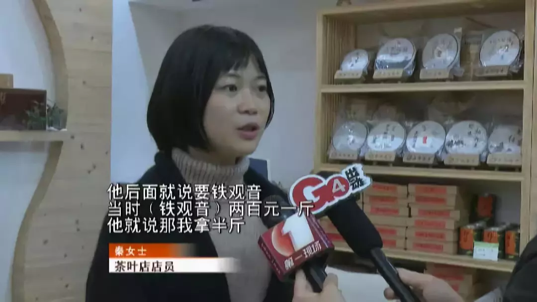 秦女士介紹,26日下午5點(diǎn)鐘左右,她和另一位店員正在包裝茶葉。正當(dāng)兩人忙活的時(shí)候,一位目測(cè)有40多歲的顧客突然進(jìn)店,說想要買點(diǎn)茶葉。秦女士回憶,那個(gè)人一進(jìn)來就問了有沒有一百塊的茶葉,她說沒有,然后這位顧客就問最便宜的茶是哪一種,最后說要買鐵觀音,而鐵觀音是200塊一斤,顧客表示要半斤。