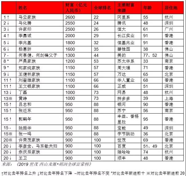 胡潤也發(fā)布了2019全球富豪榜馬云同樣是華人首富!列22位