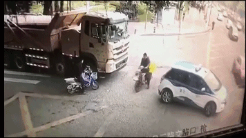 據說,當時是奶奶騎車送小孩上學,從泥頭車前經過時遭碾壓