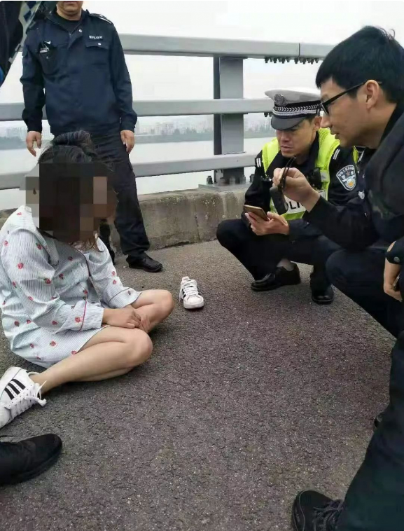 當(dāng)深圳交警趕到現(xiàn)場(chǎng)時(shí),見到該女子情緒異常激動(dòng)疑有跳橋輕生之舉,橋下便是滔滔江水,現(xiàn)場(chǎng)情況十分危急。