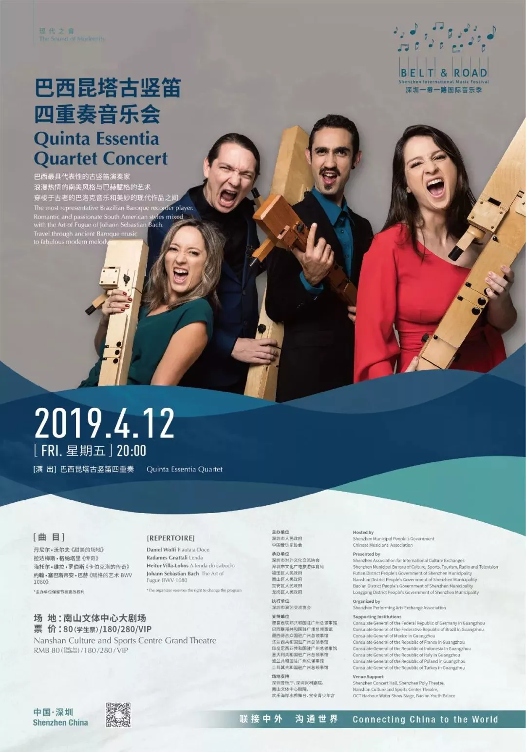 來自巴西的昆塔古豎笛四重奏,專程獻上一場融浪漫熱情的南美現(xiàn)代風格、巴西民族風與巴洛克相結合的精彩演出。