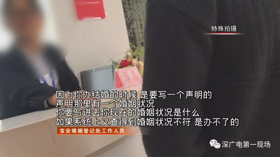 無奈之下,伍小姐只得再次來到深圳,打算為自己正名。記者和伍小姐首先來到寶安婚姻登記處,工作人員介紹,在婚姻登記過程中,男女雙方是無法隱瞞自己的婚史的。