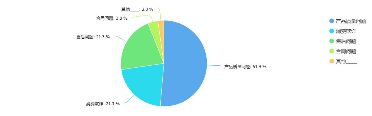 經(jīng)過(guò)統(tǒng)計(jì),51.4%的受者普遍反映遇到的消費(fèi)侵權(quán)問(wèn)題是產(chǎn)品質(zhì)量問(wèn)題,其次,消費(fèi)欺詐和售后問(wèn)題也是消費(fèi)者最關(guān)注的問(wèn)題之一。
