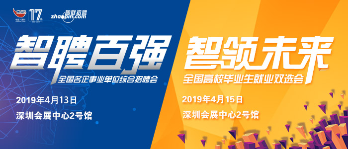 四月的深圳將迎來一波大春招,第十七屆中國國際人才交流大會將于4月14日 -15日在深圳會展中心開幕。作為大會重要組成部分,由智聯(lián)招聘執(zhí)行的2019年“智聘百強”全國名企事業(yè)單位綜合招聘會,及“智領(lǐng)未來”全國高校畢業(yè)生就業(yè)雙選會,將分別于4月13日、4月15日在深圳會展中心2號館舉辦。