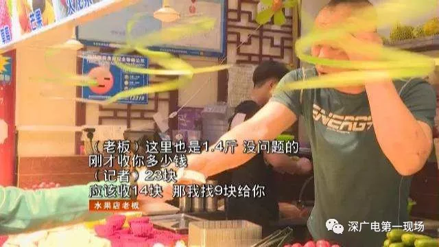 記者按照劉小姐指引,找到該水果店,買了2斤3兩的現(xiàn)切水果,但是這號稱2.3斤的水果實際只有1.4斤。記者的質(zhì)疑引來一名自稱是老板的男子,他在同一個秤上,親自幫記者稱那盒水果,結(jié)果稱出來的也是1.4斤。