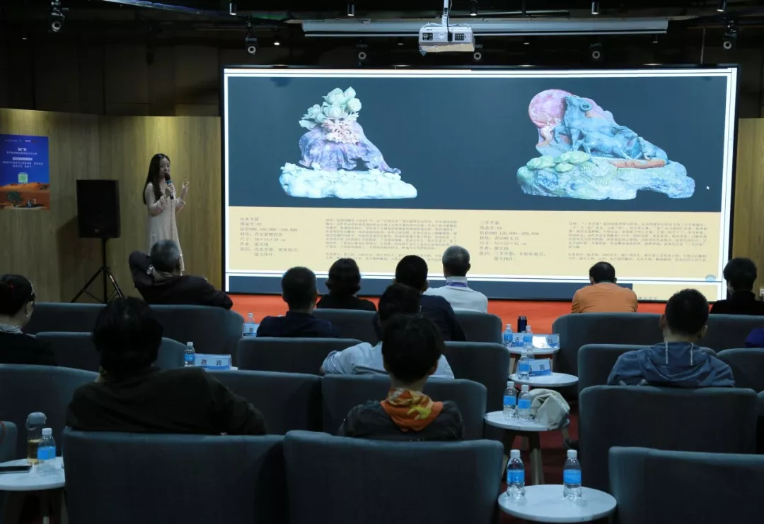 文博會(huì)藝術(shù)扶貧公益基金也介紹了即將舉辦的“東方國(guó)石·文博會(huì)名家名石公益拍賣會(huì)”。本次拍賣會(huì)由東方國(guó)石文化產(chǎn)業(yè)(深圳)有限公司共籌集十六件名家名石精品,價(jià)值過(guò)百萬(wàn)元。拍賣所得款項(xiàng)將用于河源雅色藝術(shù)扶貧計(jì)劃和江西尋烏的對(duì)口幫扶。