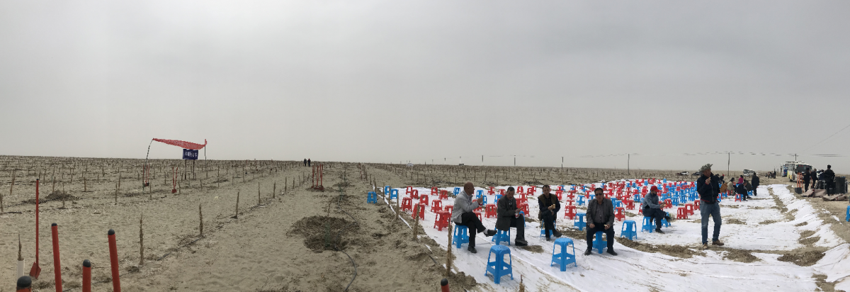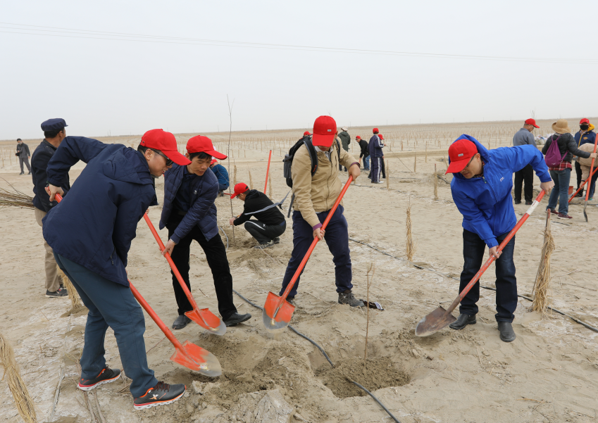 每年春秋兩季,麥蓋提縣約10萬名干部群眾都要到沙漠里植樹