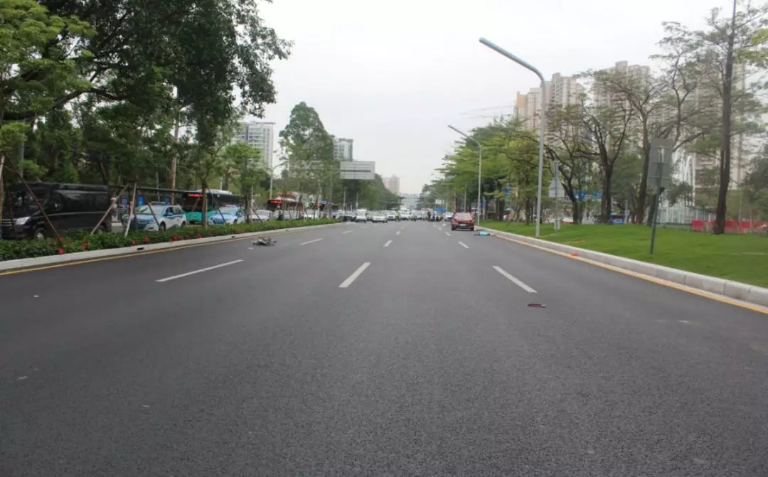 案發(fā)現(xiàn)場(chǎng)位于寶安區(qū)寶安大道新安街道中糧卡羅社區(qū)路段,南往北主道路寬13.72米,該路段設(shè)立有輔道及非機(jī)動(dòng)車(chē)道。瀝青路面,照明條件為白天,交通信號(hào)方式為標(biāo)志、標(biāo)線(xiàn)。