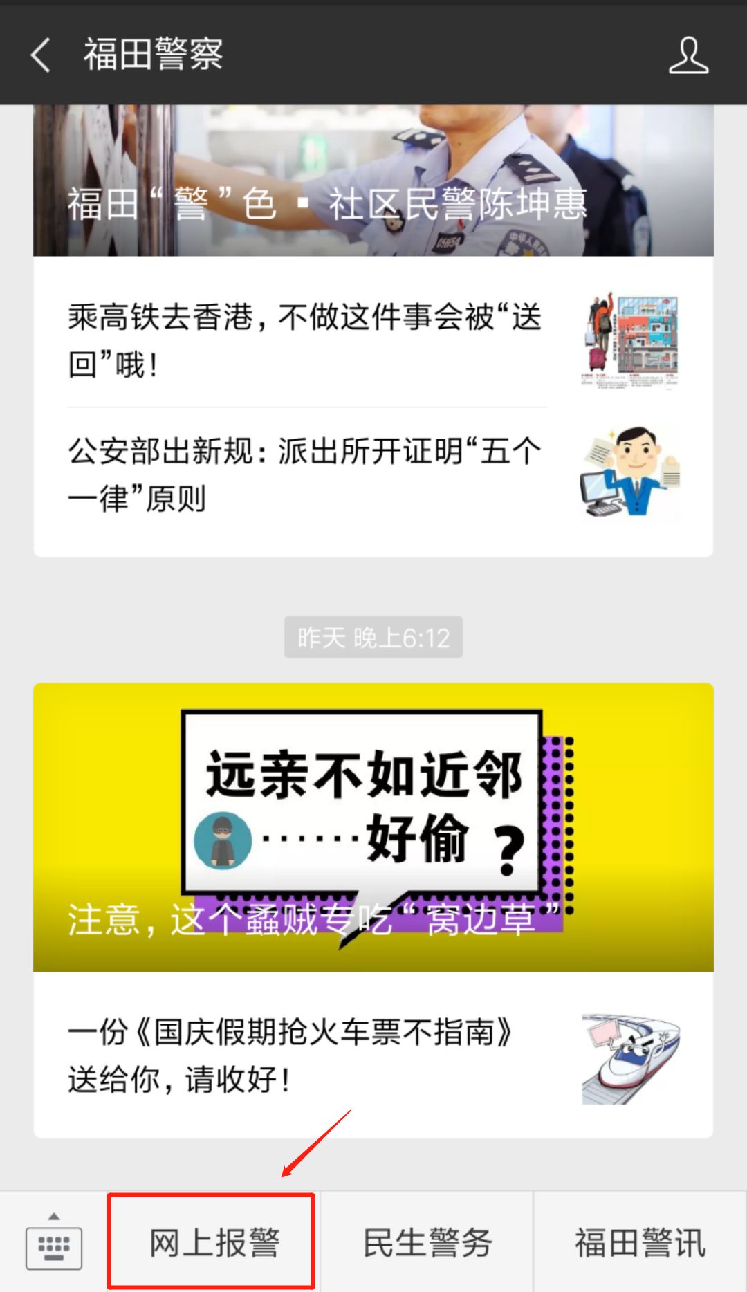 點(diǎn)擊“網(wǎng)上報(bào)警”菜單欄