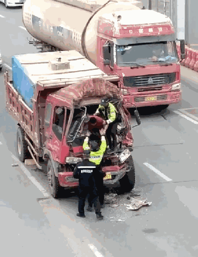 5分鐘,成功施救。經過努力,交警成功將司機從車輛前窗救出,并扶至路邊等待救護車。
