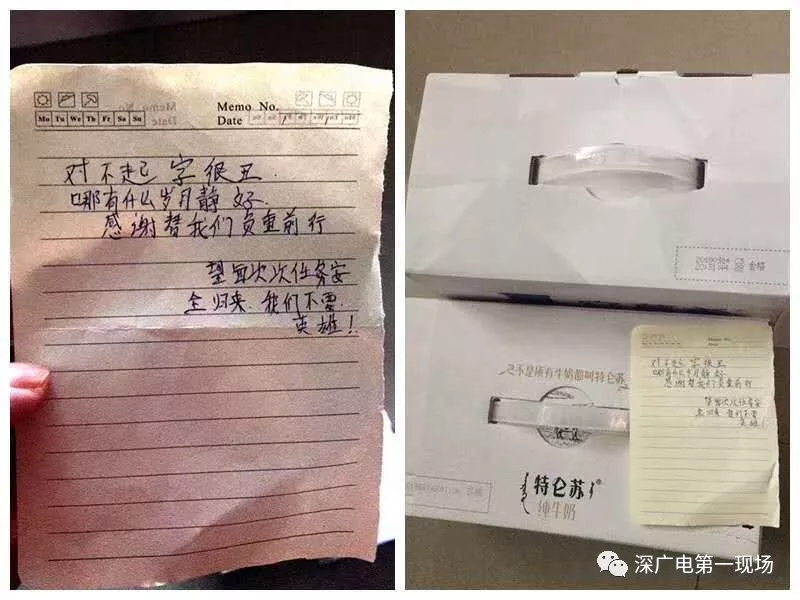 據(jù)消防員們介紹,收到的禮物中有牛奶、王老吉等飲料,有些是市民親自送上門(mén)的,有些則是由外賣(mài)員送來(lái)的,跟禮物一起的還有一些信件和紙條,也許從這里面,我們可知一二。