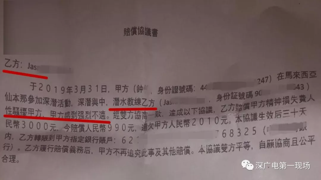 而同行的小丹表示,她也受到了潛水教練的性騷擾,教練有意無意觸碰她的敏感部位,后期更是直接上手。