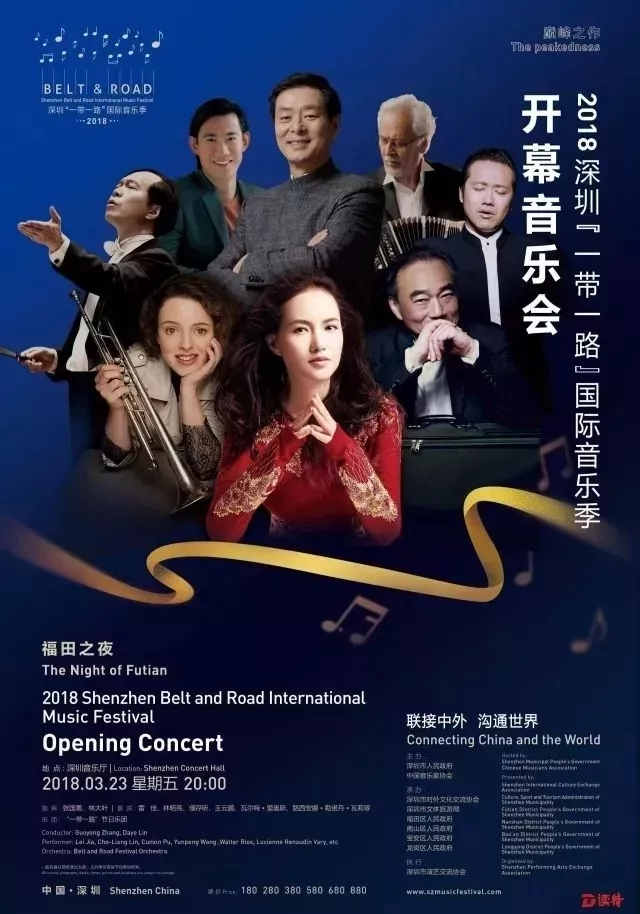 ●2017年3月25日至4月16日,首屆深圳“一帶一路”國際音樂季誕生,來自30個國家和地區(qū)、14個優(yōu)秀團組的700多位世界知名音樂家上演16場高水準(zhǔn)音樂會與演出,網(wǎng)絡(luò)瀏覽量高達(dá)5.3億次。至此,“一炮走紅“,成為深圳建市以來,由政府主導(dǎo)的水平最高、最成功的一次文藝盛舉。
