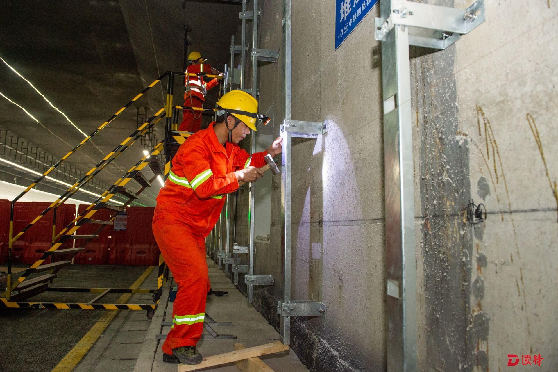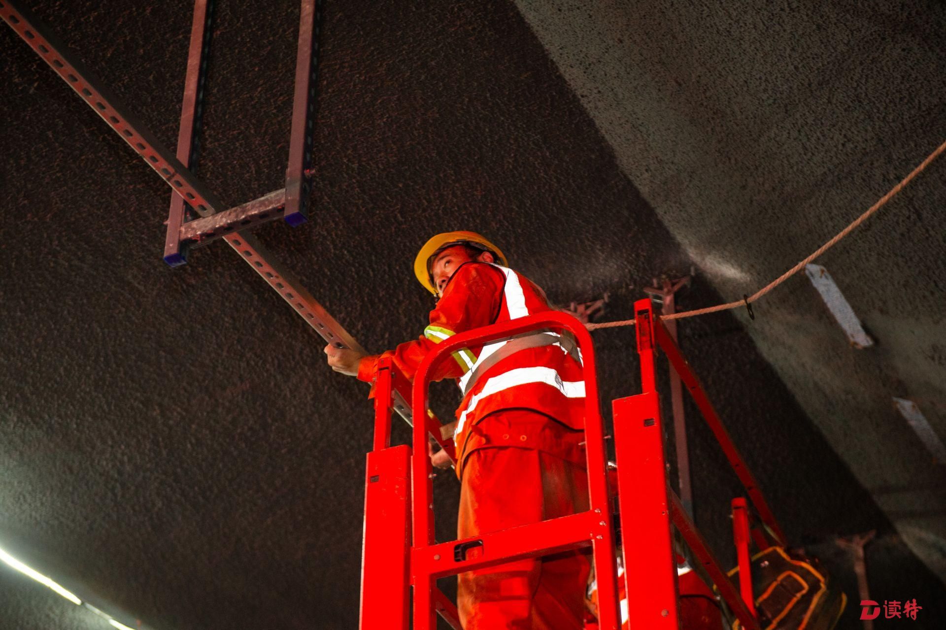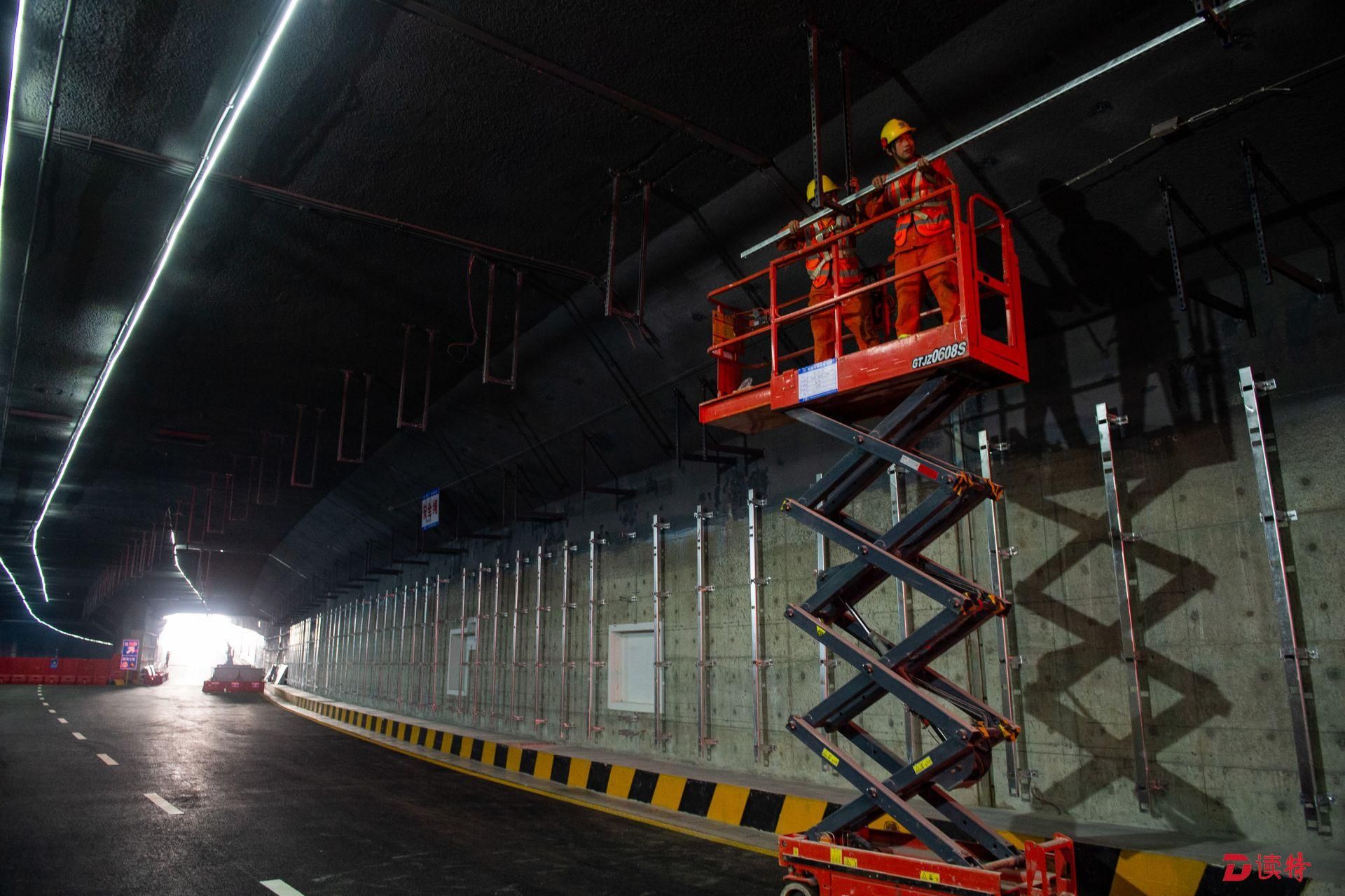 4月16日,讀特記者從臨海大道與前灣三路路口附近乘車進入地下道路,看到前海地下道路已經(jīng)實現(xiàn)主體隧道貫通,項目進入裝飾裝修和機電設(shè)備安裝階段,工人正在隧道內(nèi)安裝照明、通風、排水、消防等設(shè)施。在項目工程樣版段,記者看到隧道兩側(cè)的已經(jīng)裝好搪瓷鋼板,頂部的連續(xù)燈帶和交通指示燈也已經(jīng)安裝到位,地面上也已經(jīng)劃好了分道線。中鐵四局機電公司相關(guān)負責人表示,目前前海地下道路機電裝修工程樣板已經(jīng)順利通過驗收,為接下來大面積機電裝修施工提供了標準指引。該負責人表示:“全線共安排了一百多名工人,分區(qū)域進行設(shè)備安裝和裝飾裝修,將確保項目年底竣工、2020年初通車,為前海發(fā)展提供更好交通保障。”