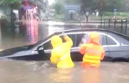 奔馳車遭水浸,深圳外賣小哥鐵鍬砸窗救被困司機(jī),視頻太驚險(xiǎn)!