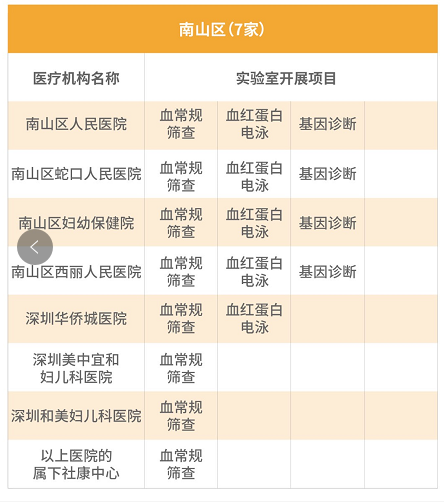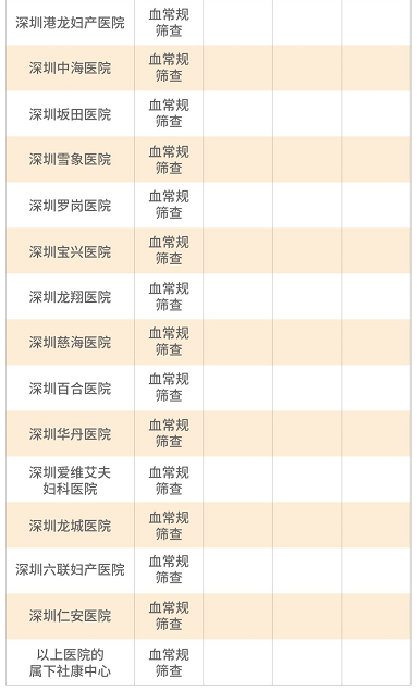 2017年起,深圳市針對常住孕婦夫婦開展免費地貧篩查項目,包括:新婚及計劃懷孕的深圳常住人口夫婦;孕前未接受地貧篩查的、夫婦雙方或一方為深圳常住人口的懷孕夫婦。