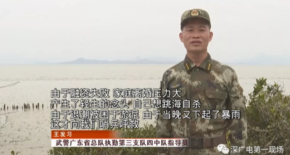 近日,深圳一男子打算在深圳灣跳海輕生,卻因海水退潮,被困在淤泥中