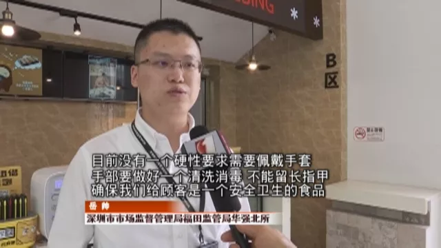 該店的同事趕緊進到廚房進行提醒,這名店員隨后也急忙戴上了手套!
