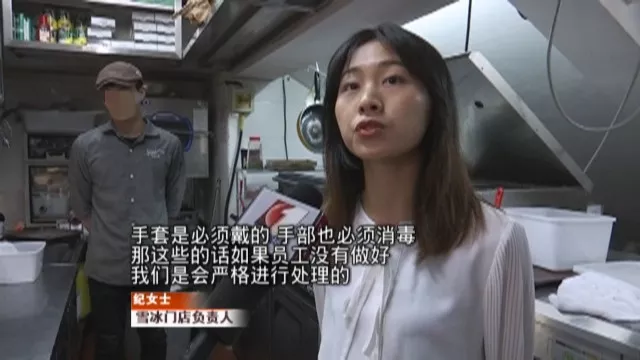 事件引起執(zhí)法部門關注,市場監(jiān)督管理局福田管理局華強北所的執(zhí)法人員,突擊檢查這家雪冰甜品店的后廚。對于員工徒手加工食品的做法,雪冰甜品店負責人表達歉意。
