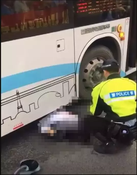 從報(bào)料市民拍到的現(xiàn)場(chǎng)畫面可以看到,在一個(gè)右轉(zhuǎn)彎路口處,一輛公交車疑似和一名路人發(fā)生了碰撞,一名身穿白色上衣的女子倒地,幾乎整個(gè)下半身都被卷入了公交車底,女子臉上和身上都有明顯血跡,身旁一位交警在照看著她。