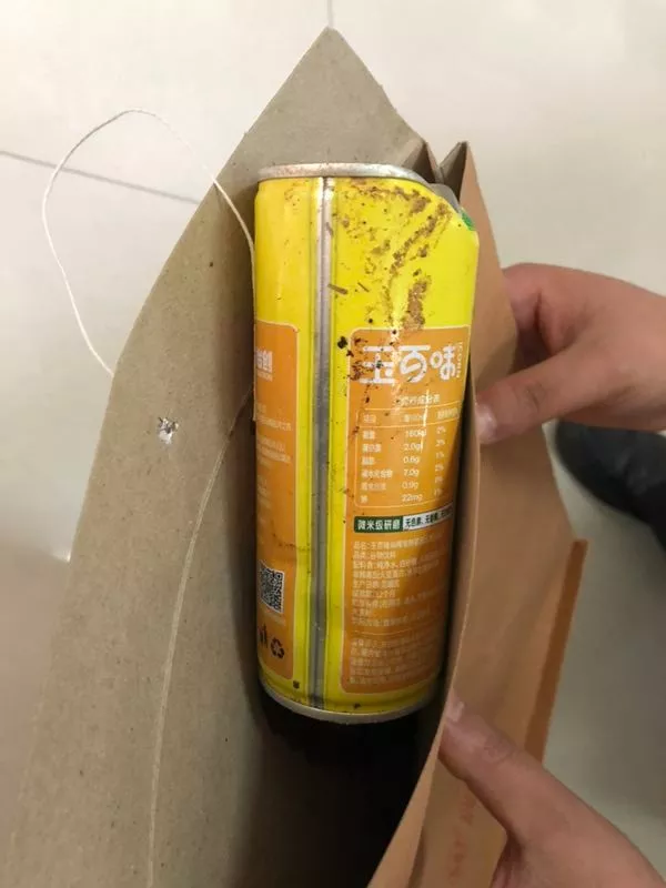 記者在小區(qū)物業(yè)管理處,見到了這個(gè)被封存的易拉罐,原來(lái)當(dāng)時(shí)拋下來(lái)的時(shí)候,這個(gè)罐子內(nèi)還有部分未喝完的飲料,增加了罐子的重量。