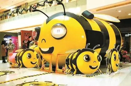 1號館福田展位的大蜜蜂型動感球幕影院“蜜達”。深圳晚報記者 李京蔚 攝