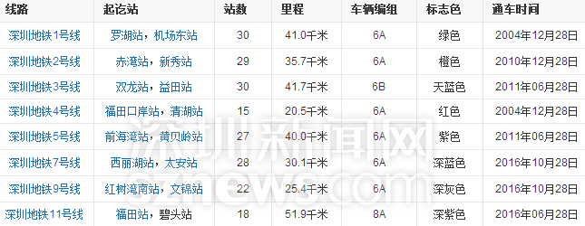 深圳地鐵目前正在運(yùn)營的線路信息↑