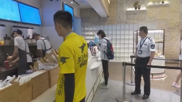 執(zhí)法人員介紹,2018年11月施行的《餐飲服務(wù)食品安全操作規(guī)范》規(guī)定,餐飲員工可以在手部消毒后,不戴手套操作,但是必須佩戴口罩。也就是說,該店員工徒手配制茶飲,屬合規(guī)情況。