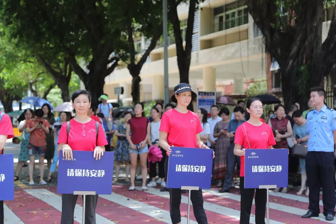 考試開始和結(jié)束時,在深圳實驗學校中學部的考場外,家長們自發(fā)組織的義工服務(wù)隊也正在有序地維護著考場外的秩序。通心嶺派出所積極與本次家長義工服務(wù)隊的成員溝通,在考試結(jié)束后散場時能夠快速緩解人流,保證考場周邊的秩序。