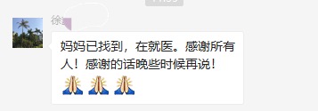 剛剛,讀特記者接到最新消息,經(jīng)過(guò)兩天兩夜的搜尋,14日上午,徐媽媽在南山現(xiàn)代城華庭的一處綠化草叢中被找到,所幸老人平安無(wú)事。