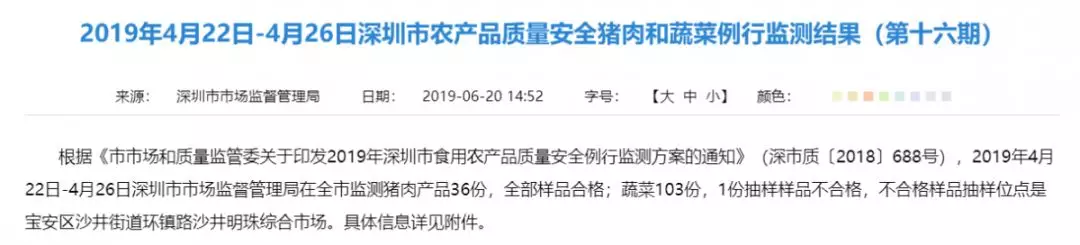 最近的深圳 真的特別火辣 辣到讓人不敢直視 滿腦只想著怎么降溫 雖然吃雪糕很爽 但一直吃不能一直爽 因?yàn)?/p> 廣東人會(huì)心一笑 開始喝起了涼茶 至于吃 最近流行起了一種說法 吃菜能降溫 作為吃菜星人食安君 覺得此法可以一試 但在此之前 必須先關(guān)注最新的菜肉抽檢資訊呀 2019年4月22日-4月26日 共抽檢36份豬肉和103份蔬菜 豬肉抽樣樣品全部合格 蔬菜有1份抽樣樣品不合格趕緊來看看 是哪份蔬菜抽樣樣品不合格? 不合格樣品抽樣信息 最后 記住要時(shí)刻關(guān)注抽檢信息哦 想要身體健康 就從守護(hù)自己的菜籃子做起! 食安君提醒大家 2019年深圳市食品安全宣傳周啟動(dòng)儀式 就要開始啦! 你,期待嗎? 編輯整理:深圳食事藥聞 轉(zhuǎn)載請(qǐng)注明以上內(nèi)容