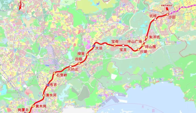 地鐵13號(hào)線路起自深圳灣口岸,止于上屋北站。線路全長22.4公里,16座車站,全部為地下線,線路兩端均預(yù)留延伸條件。沿線設(shè)內(nèi)湖全地下停車場,出入線與后海站接軌。