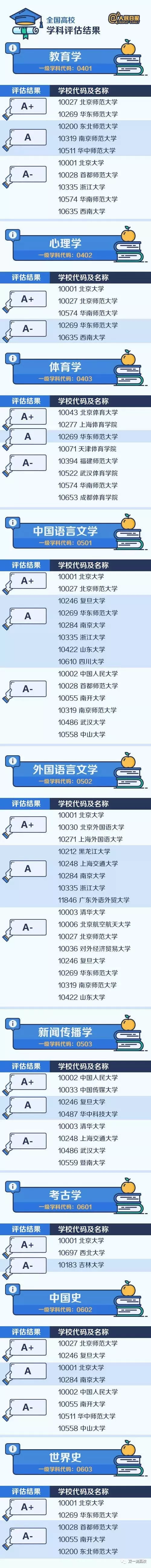 人民日?qǐng)?bào)微博專(zhuān)門(mén)整理匯總了A類(lèi)學(xué)科(包括A+、A、A-三檔),來(lái)看看這些中國(guó)最頂尖的學(xué)科名單都分布在哪些大學(xué)?