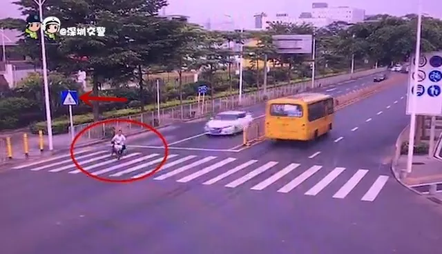 一男子騎車橫穿馬路被撞飛,而斑馬線就在不遠(yuǎn)處