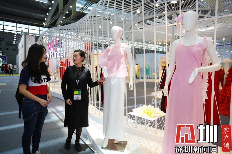 前來觀展的羅女士表示,“這個展館的服裝手感舒適,壓褶圖案比較精美,好看。”