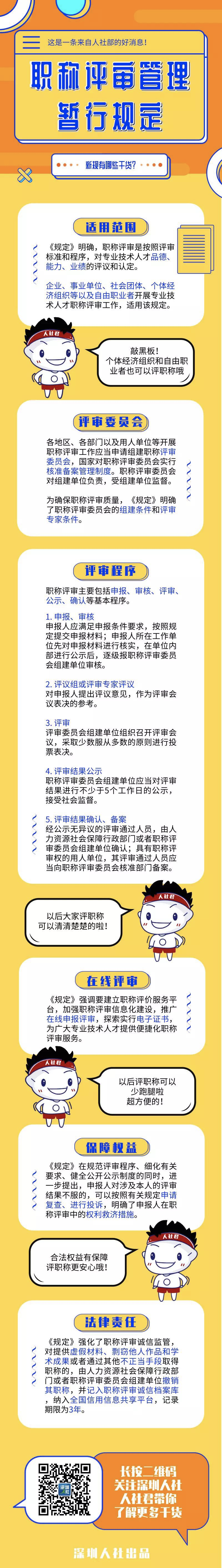 深圳特區(qū)報(bào)2019年7月12日訊 個(gè)體經(jīng)濟(jì)組織、自由職業(yè)者可以開展專業(yè)技術(shù)人才職稱評(píng)審;推廣在線評(píng)審,探索實(shí)行職稱評(píng)審電子證書;不正當(dāng)手段取得職稱的,記入職稱評(píng)審誠(chéng)信檔案庫……7月11日,記者從深圳市人力資源和社會(huì)保障局獲悉,《職稱評(píng)審管理暫行規(guī)定》(以下簡(jiǎn)稱《規(guī)定》)將于9月1日起施行,這是國(guó)家深化職稱制度改革、加強(qiáng)職稱評(píng)審管理、完善職稱政策法規(guī)體系的一項(xiàng)重要舉措。