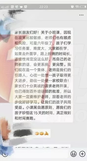 而這個(gè)所謂的小課,雖然名義上是“家長(zhǎng)自愿”,但老師都放話了,玩得又是“群上接龍”這種“明牌游戲”,又有哪個(gè)家長(zhǎng)敢公開不給老師面子呢?