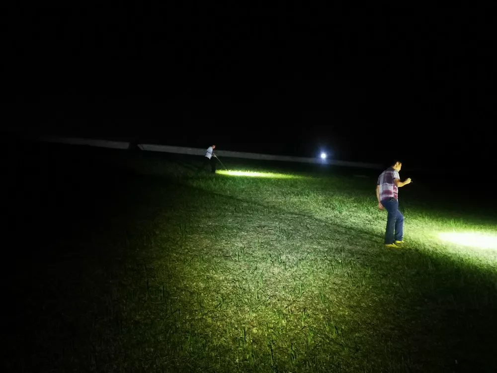他們拿著手電筒對(duì)水庫(kù)進(jìn)行巡查